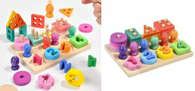 Логічна дерев’яна дошка C 75606 (28) магнітна риболовля, кілочки, сортер з цифрами та фігурами. в коробці