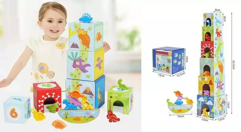 Главная > Каталог > Игрушки > Деревянные игрушки > Логічна гра C 75553 (24) кубики-будиночки, цифри, піраміда висотою 63.5 см, дерев’яний балансир, фігурки динозаврів, в коробці оптом