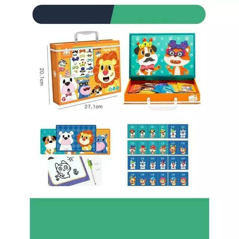 Дерев`яна магнітна дошка С 74456 (36) “Тварини”, картки із завданнями, дошка пиши-стирай, в коробці