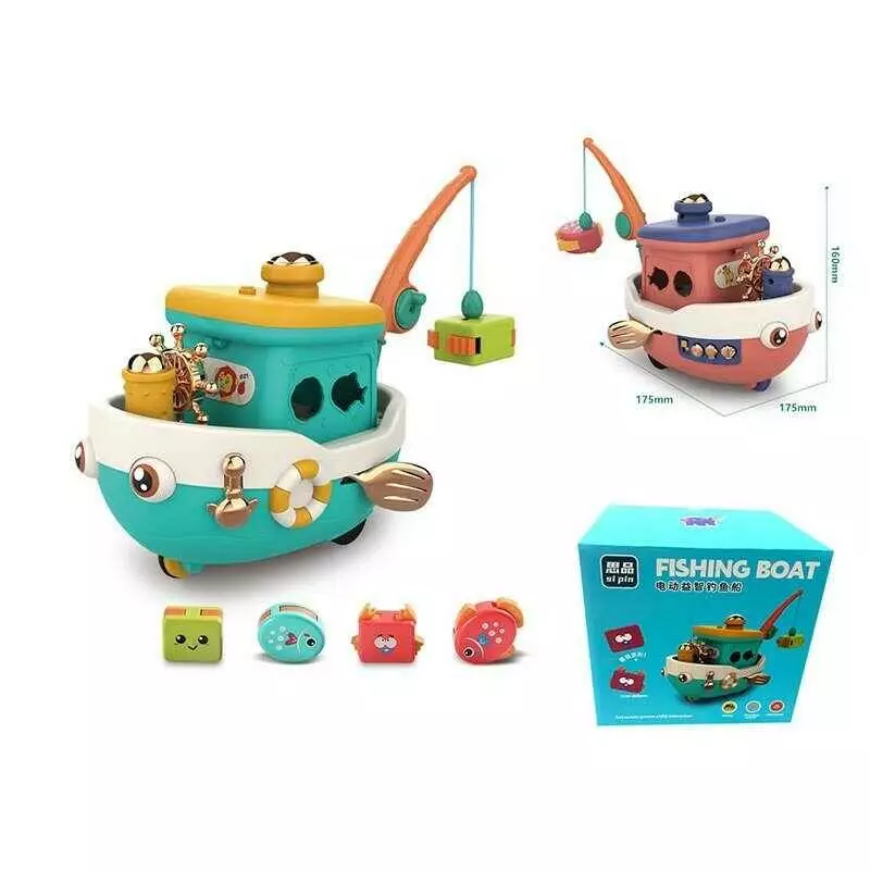 Музичний катер 9914 C (48/2) 2 кольори, 2 режими гри, магнітна риболовля, звуки, підсвічування, мелодії, їде вперед, руль-тріскачка, в коробці