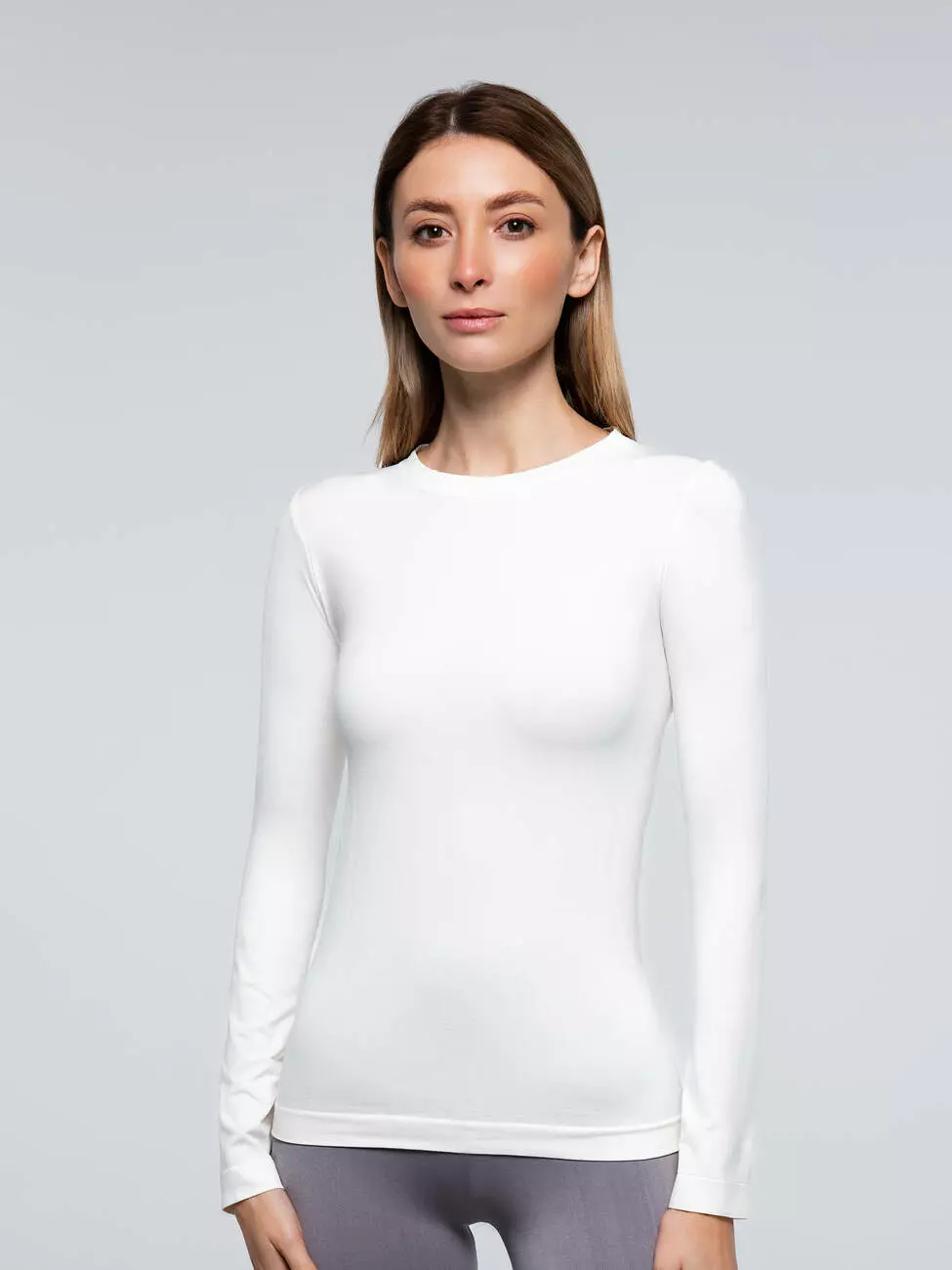 Лонгслів GIULIA — це ідеальний вибір для базового гардеробу, що поєднує в собі комфорт та універсальність. Безшовна модель із круглим вирізом горловини створює ідеальний силует, не сковуючи рухів. Виготовлений з мікрофібри, він стане незамінним як для повсякденних образів, так і першим шаром одягу в прохолодну пору року завдяки щільному плетінню, яке допомагає зберігати тепло.