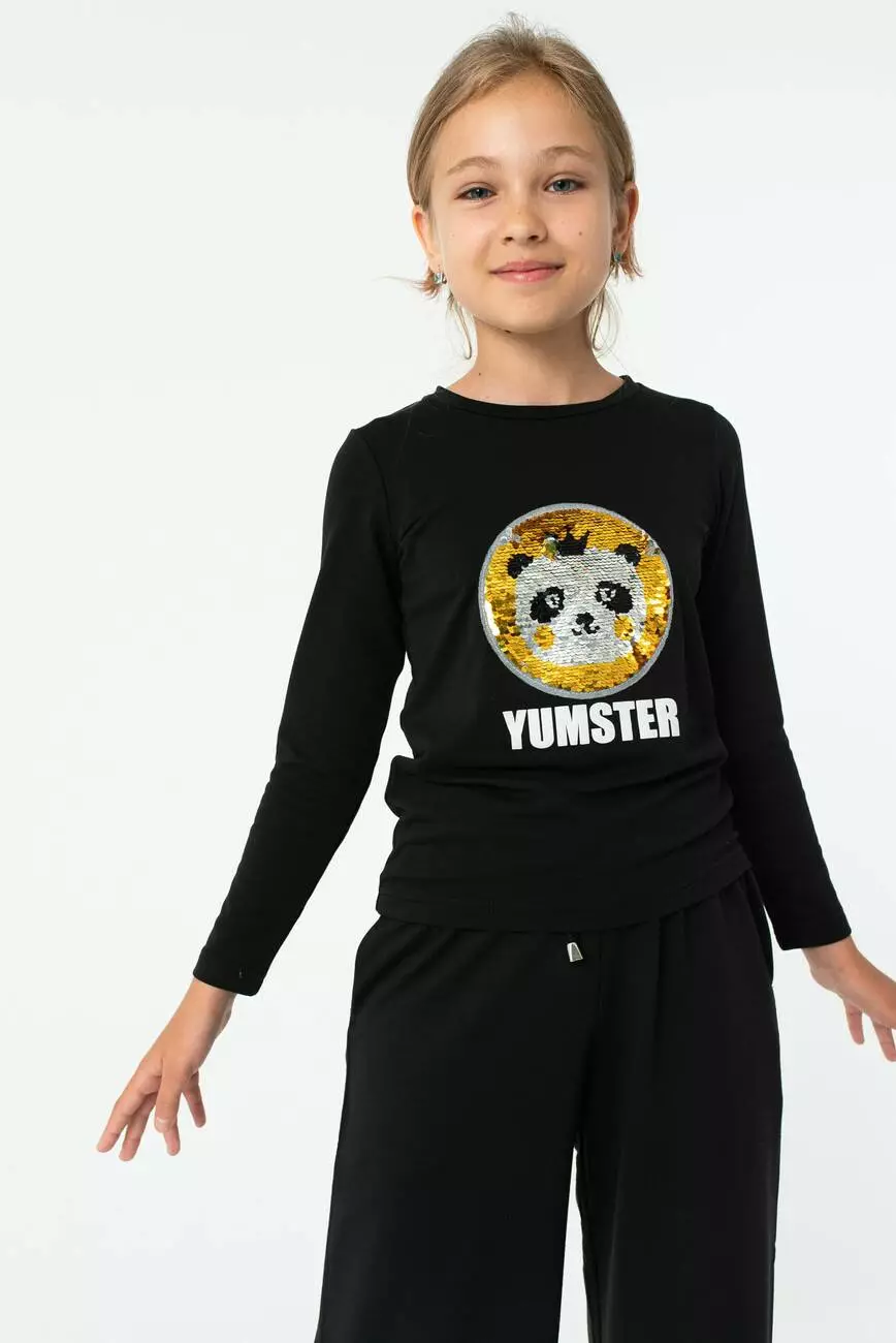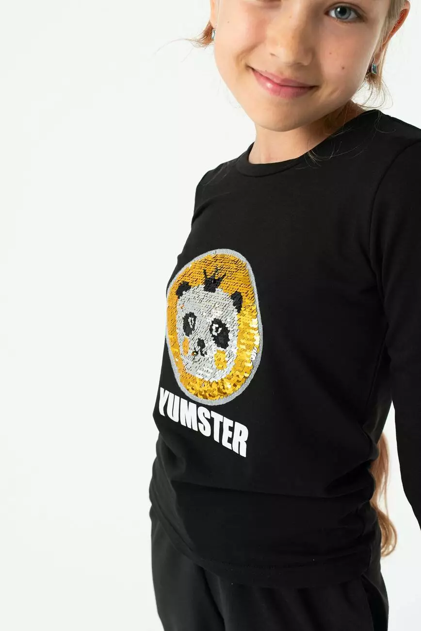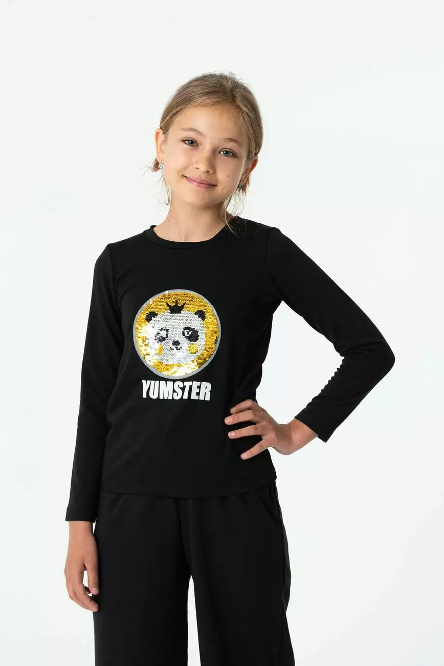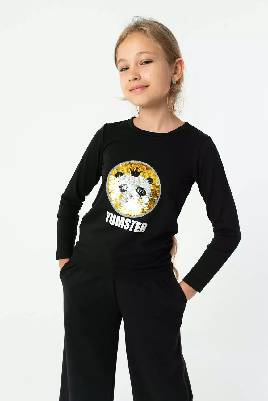 обтачкою. На грудях аплікація з двосторонніх паєток "Панда".