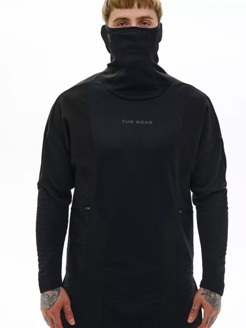 Лонгслів подовженого крою з анатомічною горловиною-маскою —