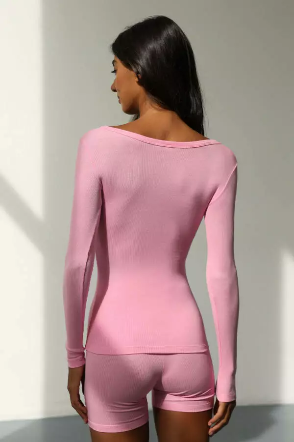 Рожевий колір додає лонгсліву особливого шарму та романтичності. Це відтінок, який чудово підходить для будь-якого типу шкіри, надаючи образу свіжості, легкості та жіночності. Рожевий лонгслів легко комбінується з іншими елементами гардеробу, створюючи як ніжні образи, так і більш виразні стильові комбінації.
