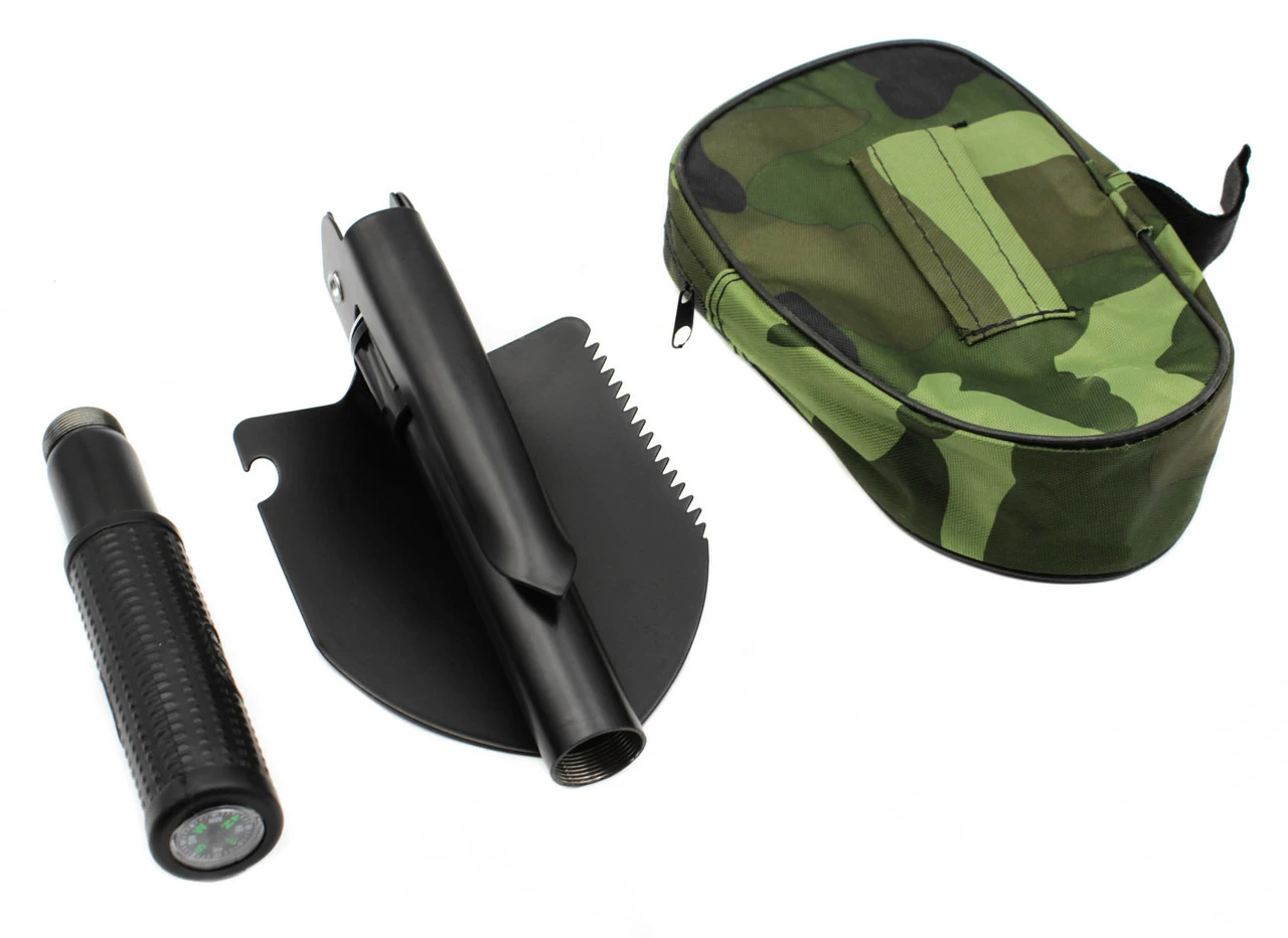 Скромные размеры в сложенном состоянии позволяют «путешествовать» как в багажнике автомобиля, так и в рюкзаке или на снаряжении туриста. Нейлоновый мешочек – чтобы не запачкать багажник авто – входит в комплект. Прочный клинок изготовлен из высокоуглеродистой нержавеющей стали. Он легко раскрывается и надежно запирается в этом положении. Рукоятка лопаты имеет прорезиненное покрытие, так что, не будет скользить в руке. Ручка удобно регулируется по высоте.