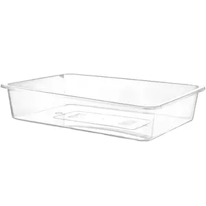 Лоток з прозорого пластика для зберігання харчових і нехарчових продуктів. Матеріал виробу міцний і еластичний не має запаху. Температурний діапазон використання від -10 до + 110°С. Дозволено використовувати в мікрохвильовій печі. Можна мити в посудомийній машині. Допустима заморозка. Irak Plastik має сертифікати, які підтверджують екологічну безпеку для людини і навколишнього середовища.