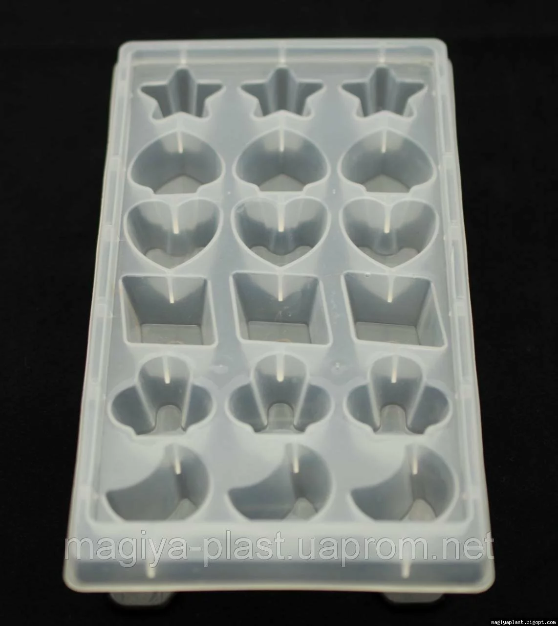 заморозки льда с ячейками разной формы в виде звездочек, сердечек,