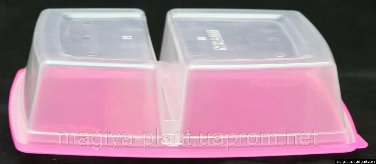 На дне пластикового прямоугольного двойного контейнера (лотка) 1.3л