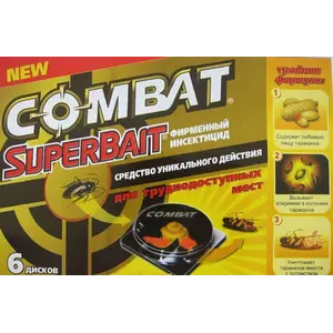 Комбат Супер Байт-это эффективное средство для уничтожения тараканов, изготовленное с использованием новейших технологий. Эти ловушки входят в число ведущих американских и японских инсектицидов.
