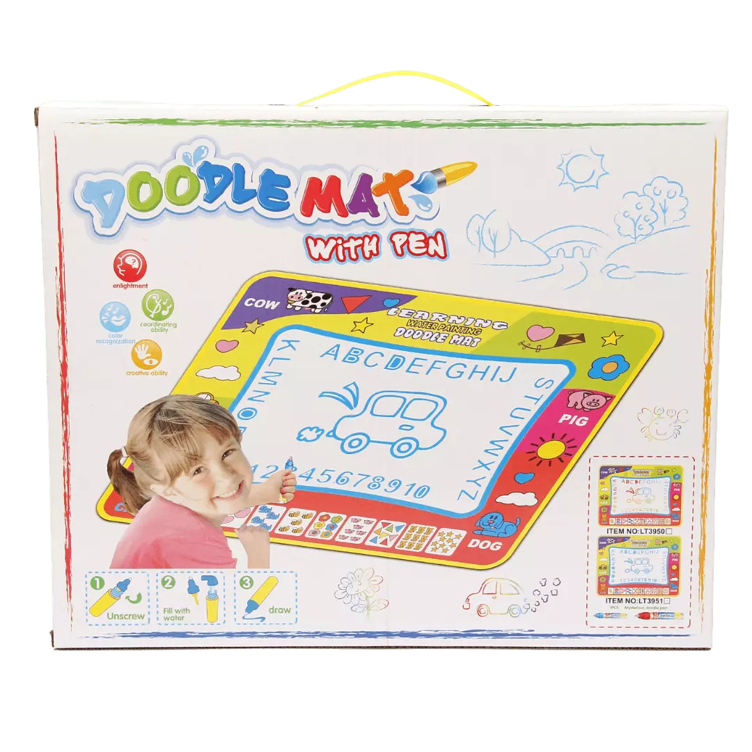 Призначений для дітей від 3 років. У комплект входить: килимок для малювання і 2 маркера для води. Дитина зможе малювати маркером, який наповнюється звичайною водою. При потрапляння води на килимок проявляється блакитний колір. Також на килимку представлений шаблон англійського алфавіту, що допоможе вивчення нової мови в ігровій та доступній формі. За висиханню води (через 5 хвилин), картинки зникають і можна знову приступити до малювання нових. Килимок для малювання сприяє розвитку дрібної моторики пальців, художніх здібностей, уяви, творчого мислення, стимулювати самовираження, розвивати посидючість, логіку. Легкий і компактний килимок, завжди можна взяти з собою, килимок виготовлений з нетоксичних матеріалів і повністю безпечний.