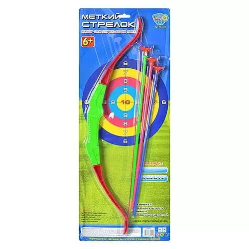 Фотография 1 товарной позиции интернет-магазина детских игрушек www.smarttoys.com.ua Лук M 0013 стріли на присосках 3 шт., лист, 64-26 см.