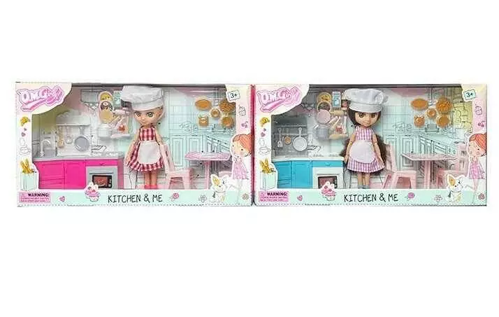 Лялька 58013 (48/2) висота: 15 см, шарнірні з’єднання, знімний одяг і взуття, кухня, кухонне приладдя, продукти, меблі, в коробці, ВИДАЄТЬСЯ МІКС