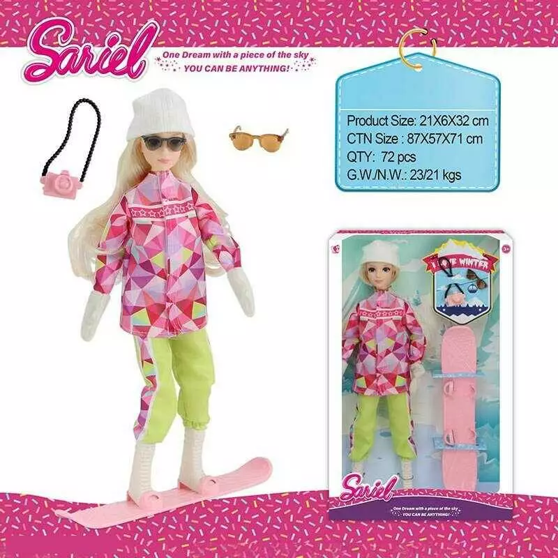 Главная > Каталог > Игрушки > Куклы > Лялька 92011 C (72/2) вис: 30 см, шарнірні з’єднання, голова і руки: гума, тіло і ноги: пластик, знімний одяг, взуття, сноуборд, аксесуари, в коробці оптом