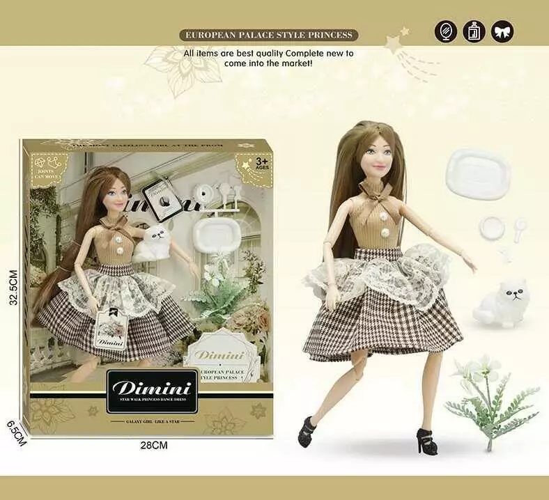 Лялька DMN 06 D (48/2) висота 30 см, зйомне взуття, столове начиння, улюбленець, в коробці