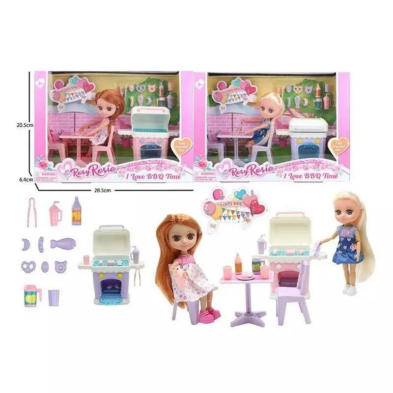 Лялька RR 019 (48/2) 2 види, висота: 16 см, шарнірні з’єднання, імітація скляних очей, знімний одяг та взуття, барбекю, 2 стільчики, стіл, в коробці