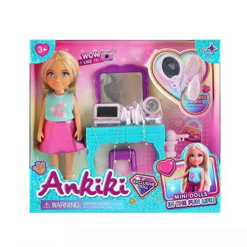 Главная > Каталог > Игрушки > Куклы > Лялька з аксесуарами 606002 (72) висота ляльки - 13 см, туалетний столик, стілець, дзеркало, аксесуари для волосся, в коробці оптом