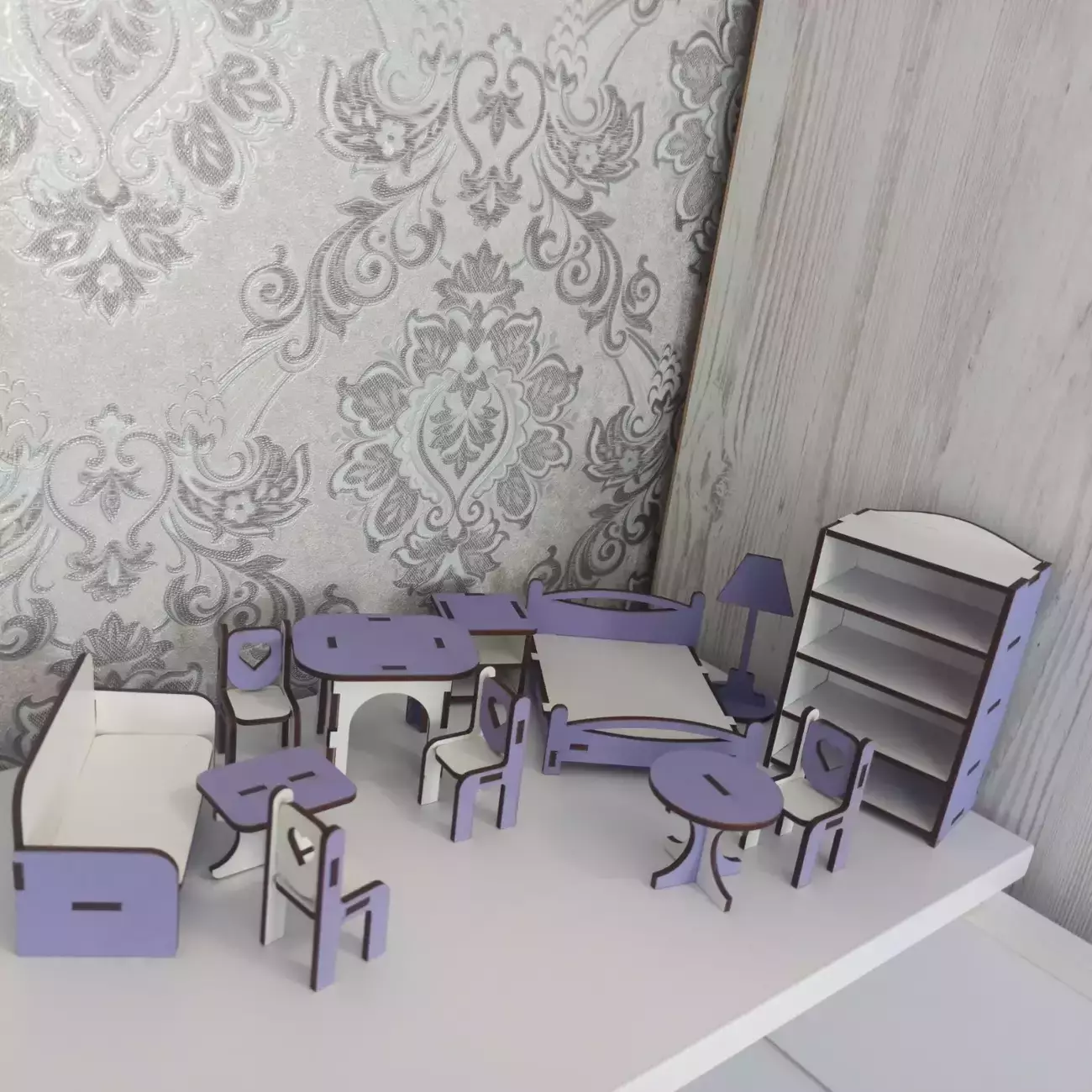 До комплекту входять: - двоповерховий будинок на 3 кімнати; - 12 предметів меблів; - інструкція. Можлива відправка в зібраному або розібраному вигляді.