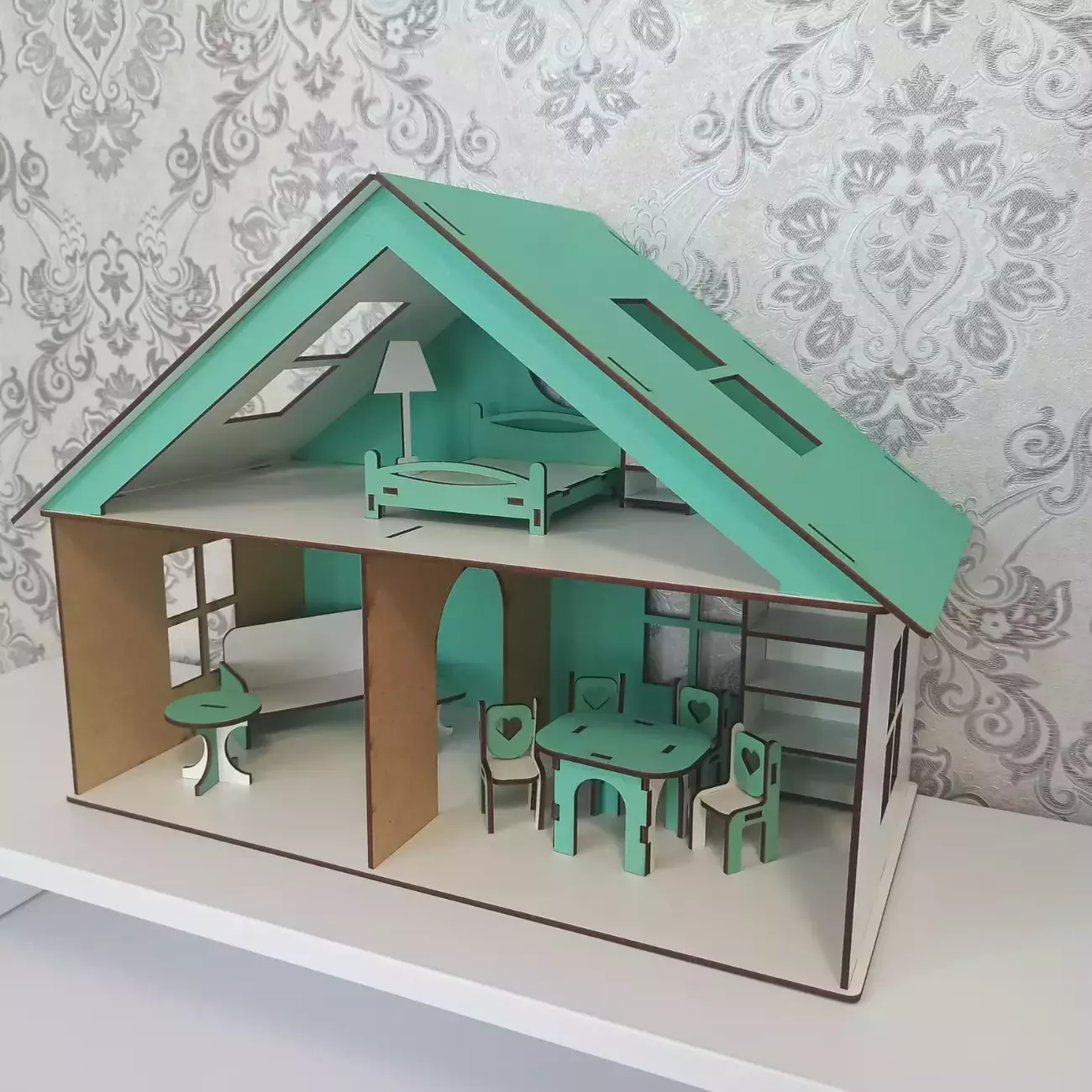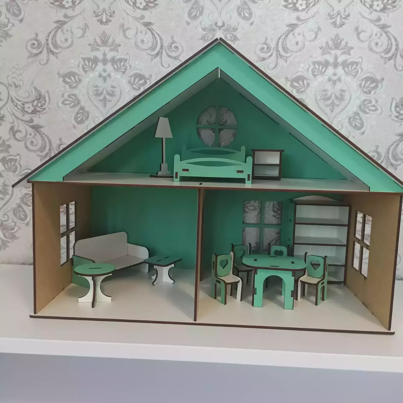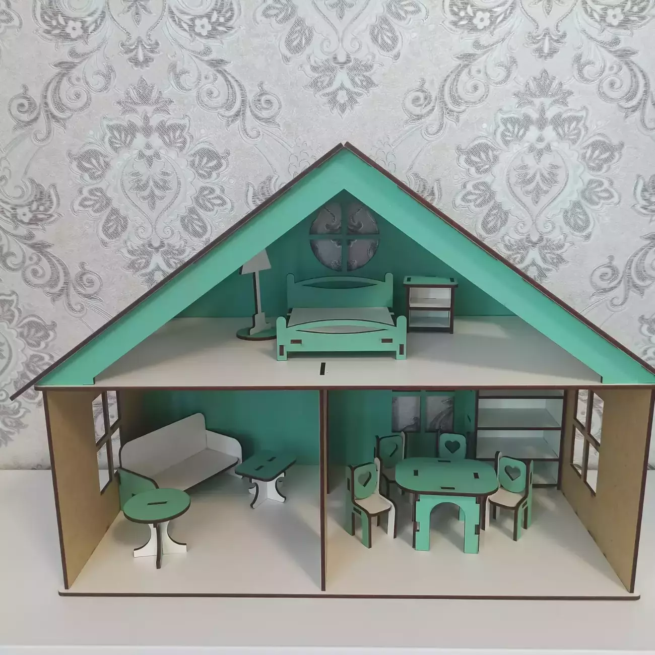 До комплекту входять: - двоповерховий будинок на 3 кімнати; - 12 предметів меблів; - інструкція. Можлива відправка в зібраному або розібраному вигляді.