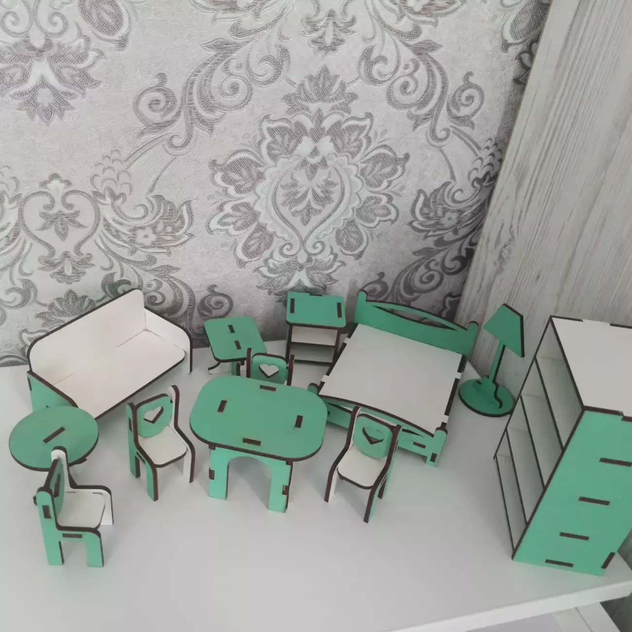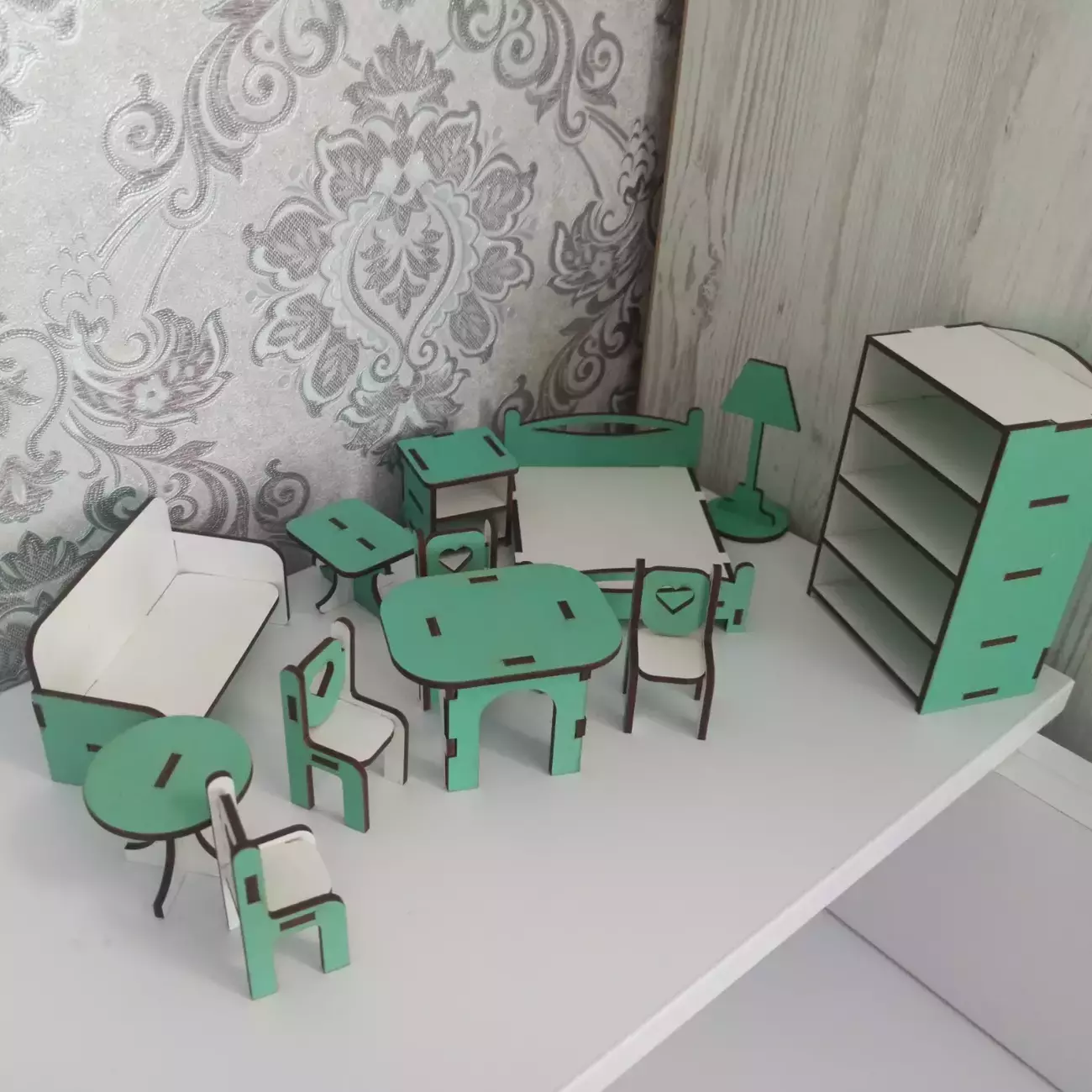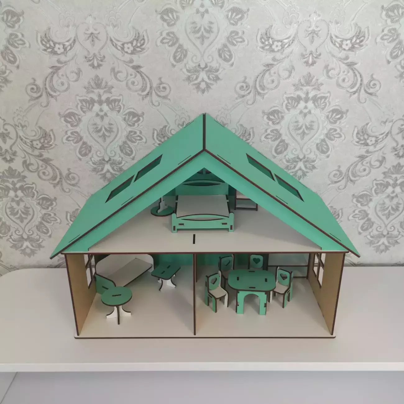 До комплекту входять: - двоповерховий будинок на 3 кімнати; - 12 предметів меблів; - інструкція. Можлива відправка в зібраному або розібраному вигляді.