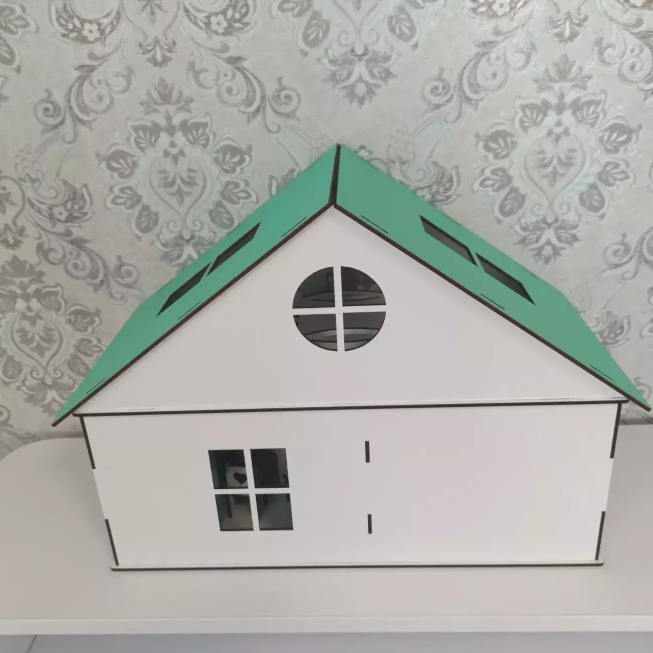 Будинок виготовлений з екологічно чистого матеріалу - ХДФ, пофарбований безпечною для дітей водоемульсійною фарбою, алергії не викликає, фарба у процесі використання не здирається, всі деталі ретельно відшліфовані і безпечні.