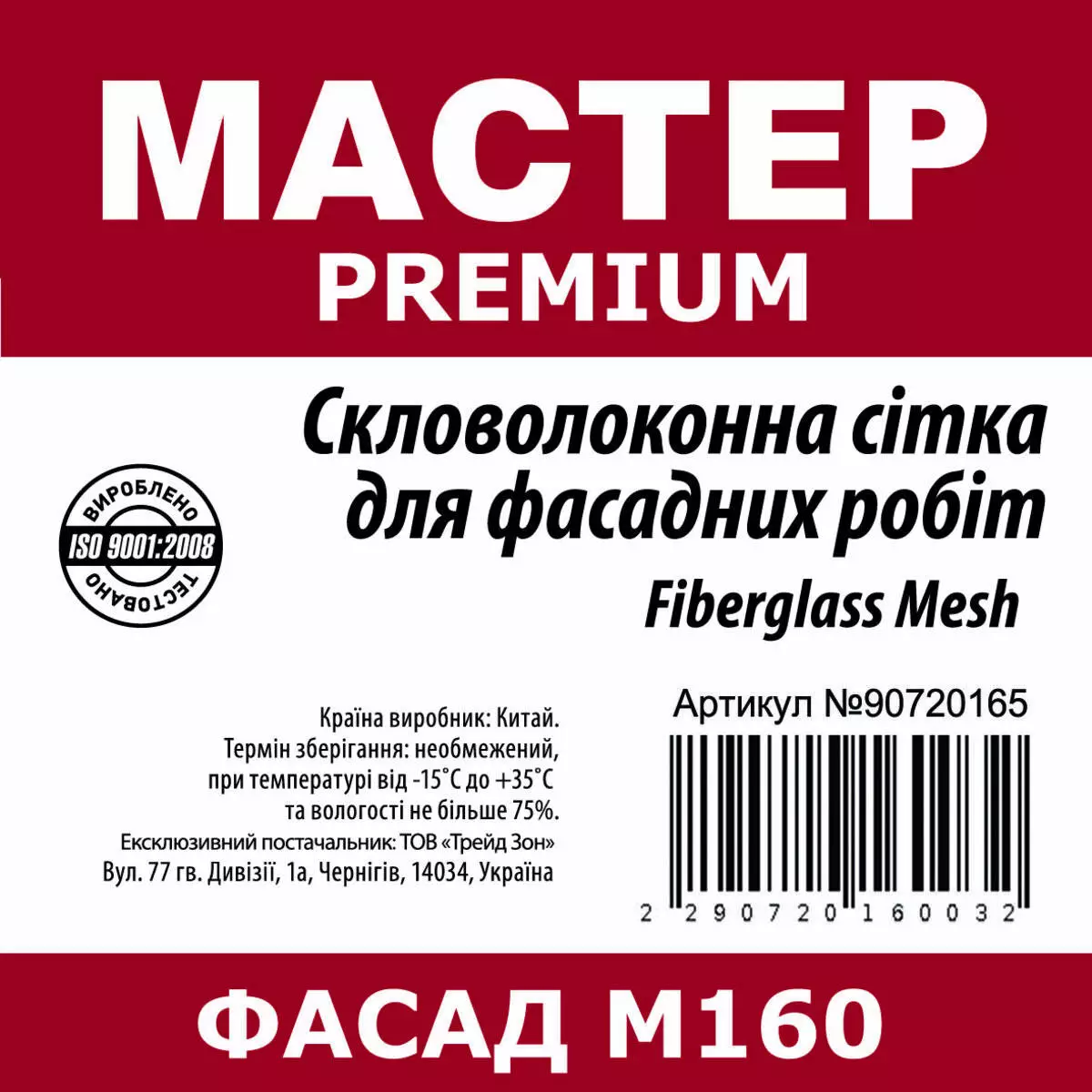 Склосітка штукатурна М160 PREMIUM ТМ FASAD Майстер 20 м.кв. -