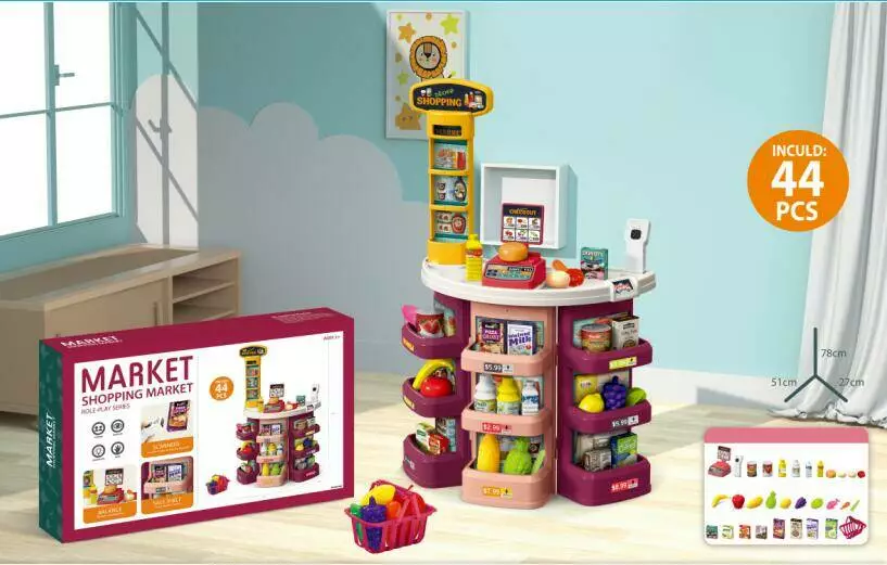 Фотография 1 товарной позиции интернет-магазина детских игрушек www.smarttoys.com.ua Магазин 922-06A прилавок, каса, вітрина, продукти, сканер,44предм.,муз.,світло,бат.,кор.,76-49-12см.