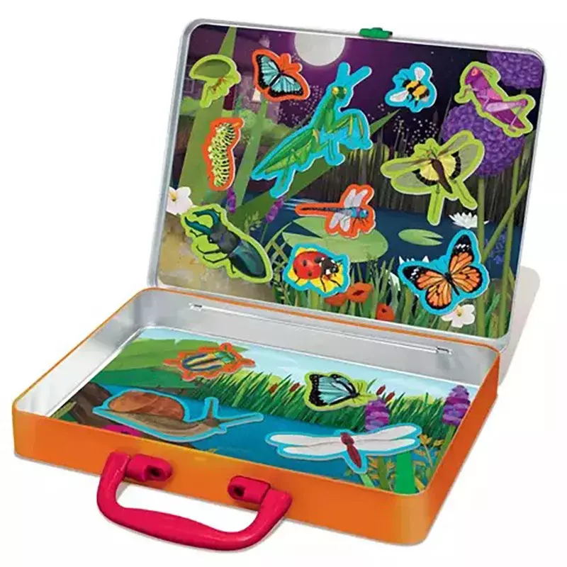 4M Магнітні комахи - це набір, що містить понад 20 магнітів у формі різних комах, а також 6 фонових зображень. Поставляється в кейсі з ручкою. Набір призначений для дітей старше 4 років. Зроблено в Гонконзі. Як використовувати Світ комах дивовижний і різноманітний. Щоб переконатися в цьому, просто відкрийте цю валізку від бренду 4M! У ній ви знайдете понад 20 магнітів у формі різних комах (жуків, метеликів, бджіл, гусей та інших). Також набір містить 6 фонів із зображенням озера, нічного ставка та квіткових полів. Кейс можна використовувати для зберігання і транспортування магнітів. У відкритому вигляді він перетворюється на зручну підставку для фонів. Кому подарувати Набір магнітів призначений для дітей дошкільного віку старше 4 років. Він сприяє розвитку фантазії, логіки, посидючості, просторового мислення, дрібної моторики та винахідливості. Про виробника Науково-пізнавальні набори 4М - це простий і цікавий спосіб вивчення різноманітних фізичних явищ, принципів конструювання та застосування альтернативних джерел енергії. Найкраще такі набори пасують дітям шкільного віку, адже саме в цей час вони неабияк допитливі та прагнуть дослідити увесь світ у найкоротші терміни. В асортименті виробника ви знайдете цікаві набори для дослідження природних явищ, проведення експериментів, конструювання роботів і механізмів тощо. Характеристики Габарити упаковки 230 ? 180 ? 30 мм Вік 4+ років Комплектація Магніти - 20+ шт. Фонові зображення - 6 шт. Пластиковий інструмент для зняття магнітів - 1 шт. Кейс із ручкою - 1 шт.