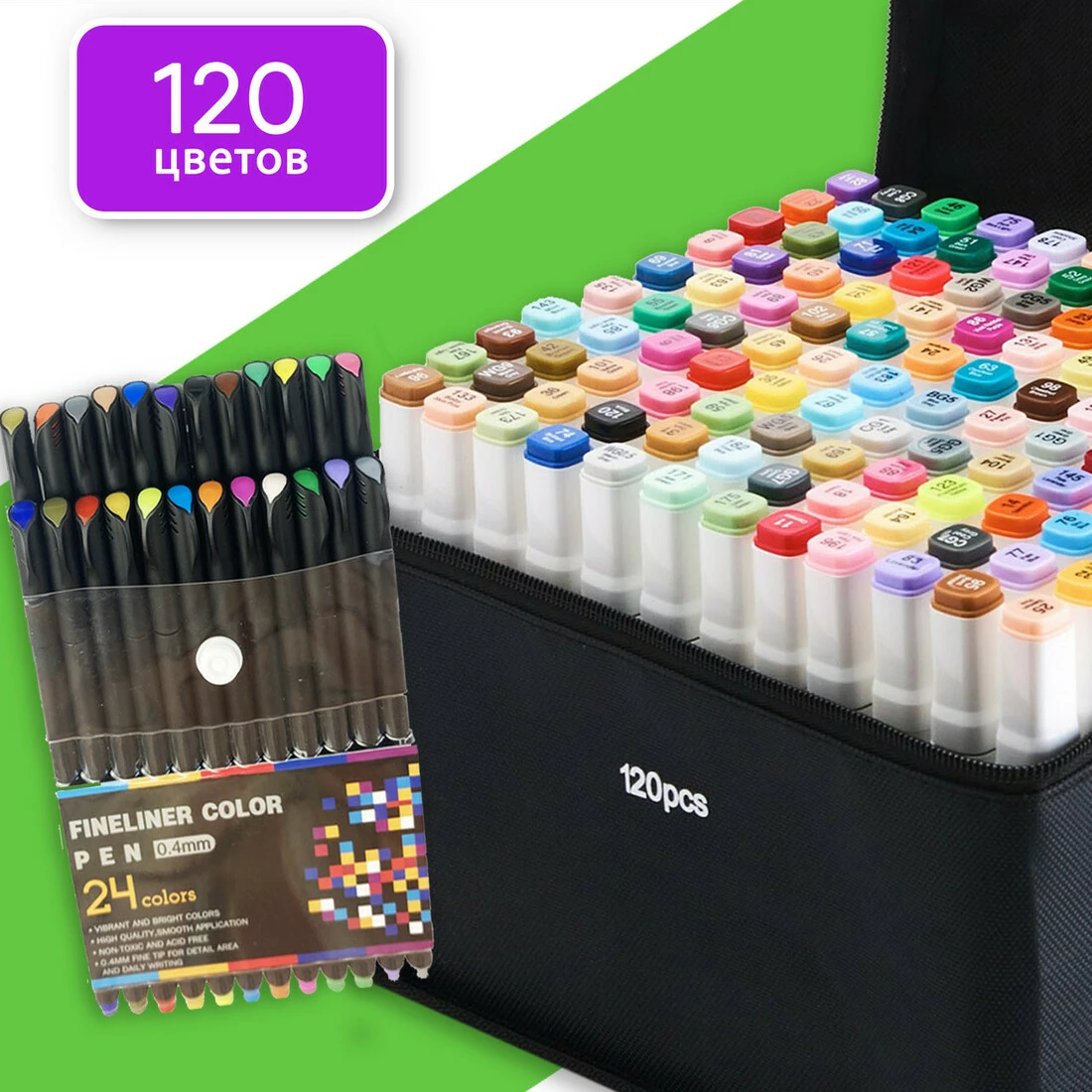 Маркери двосторонні Touch 120 кольорів і набір лайнерів 24 кольори