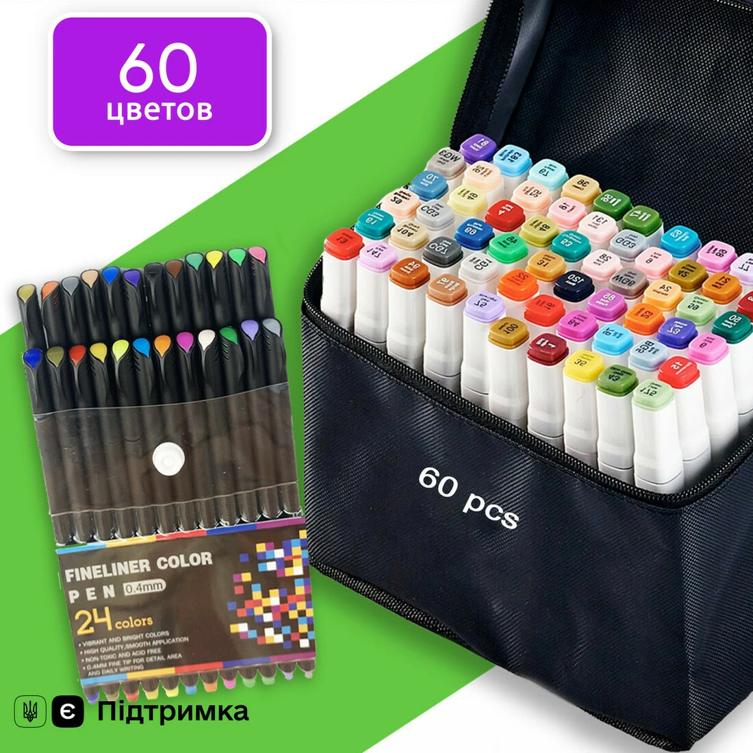 Маркери двосторонні Touch 60 кольорів і набір лайнерів 24 кольори