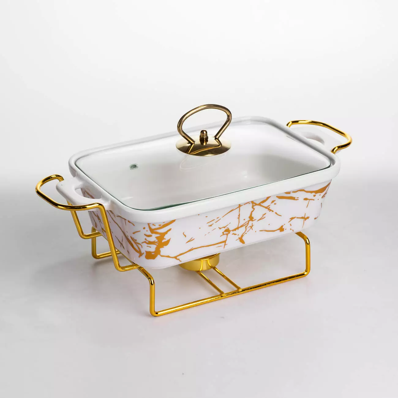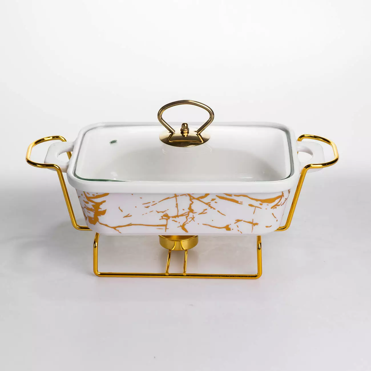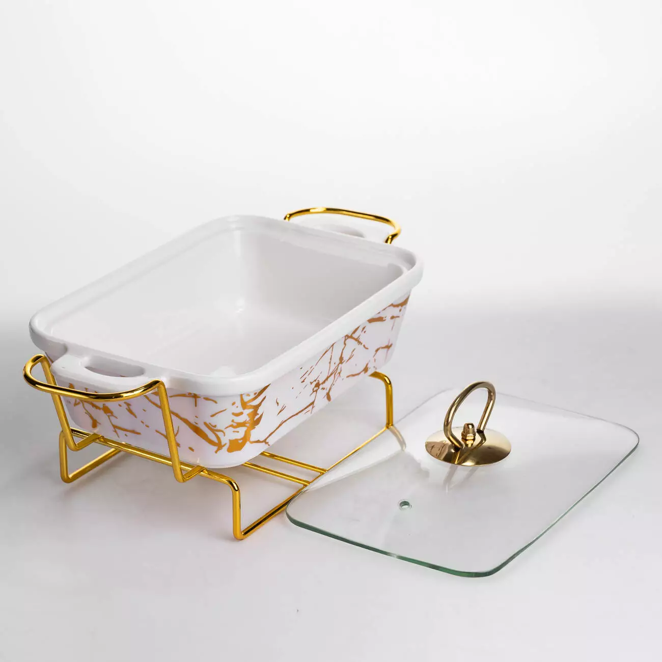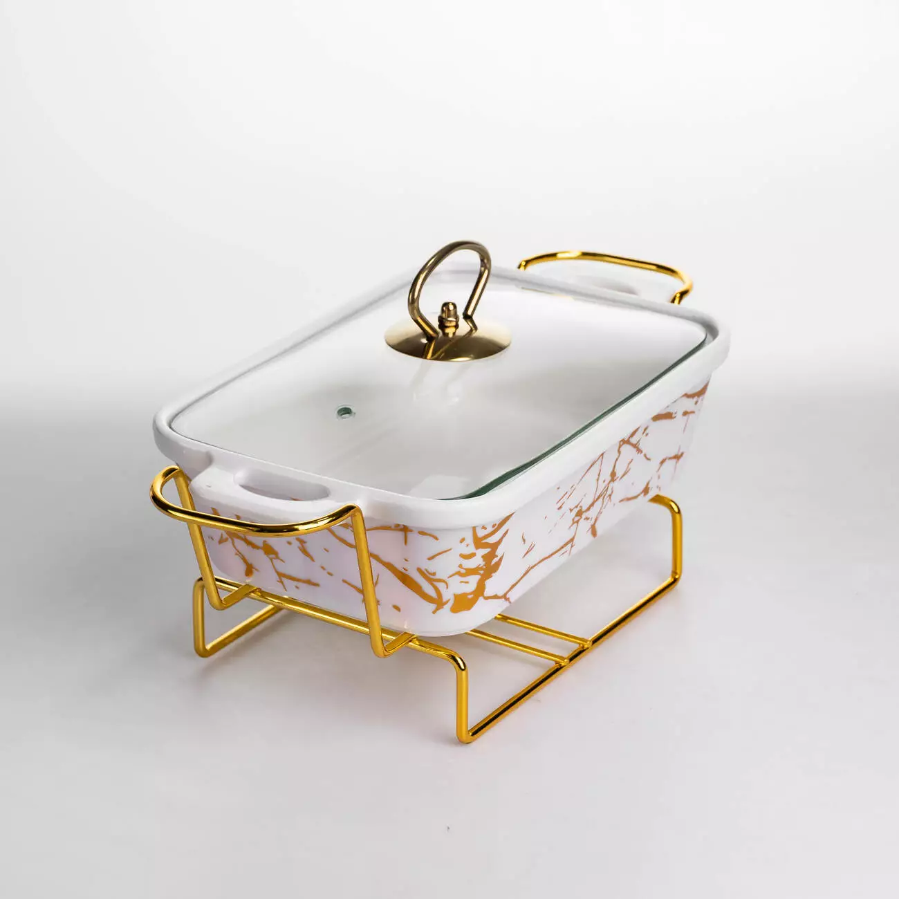 Мармітниця порцелянова 1 л прямокутна на металевій підставці 31*16*11 см