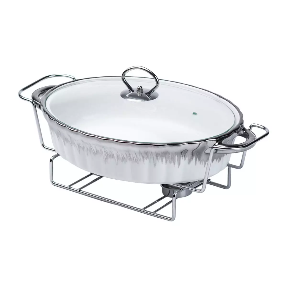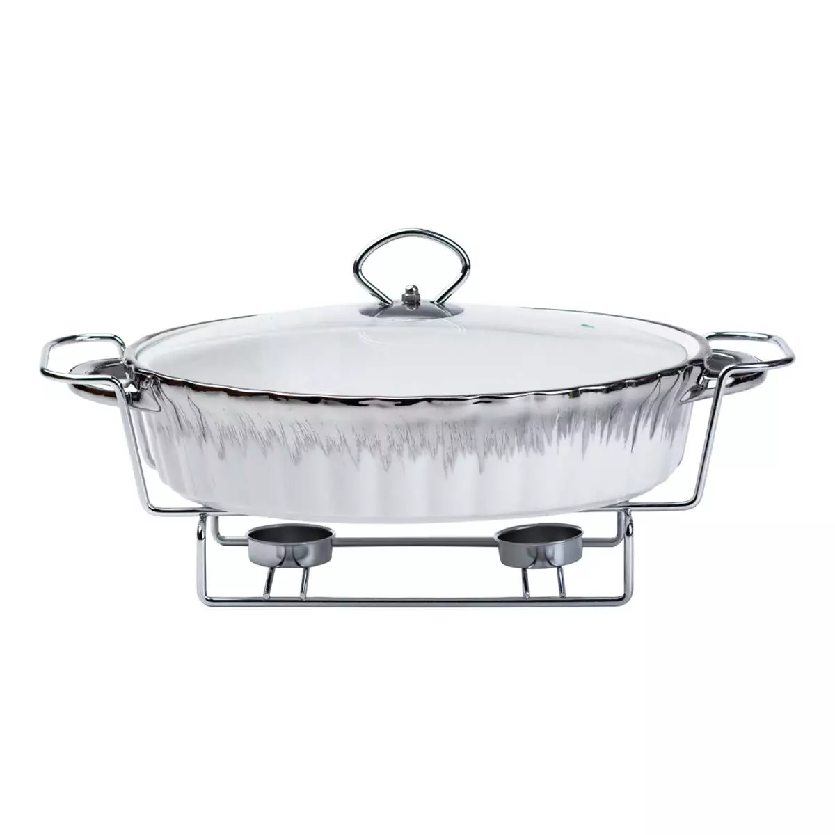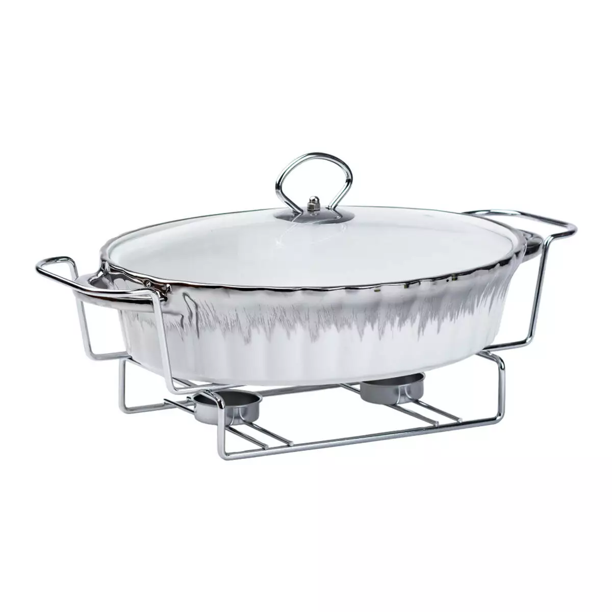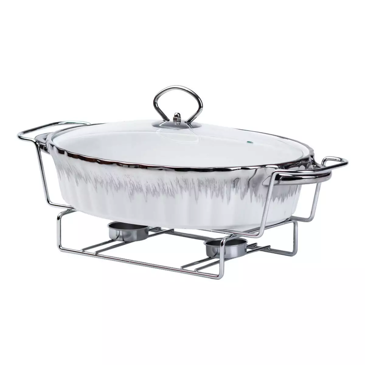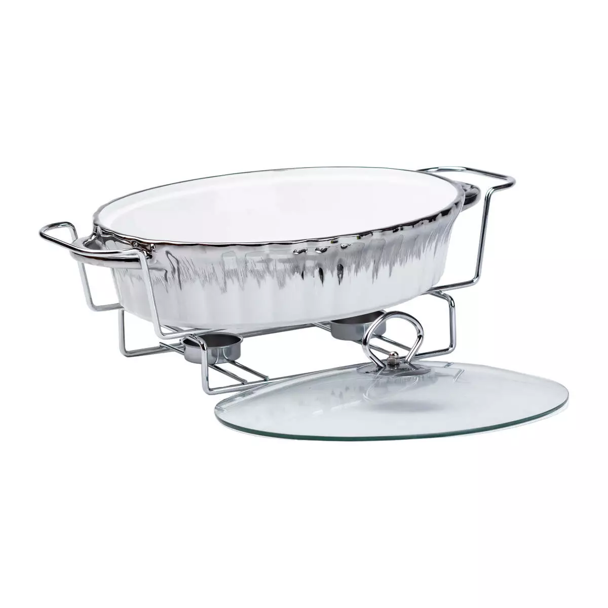 Мармітниця порцелянова овальна 1.5 л зі скляною кришкою, хром