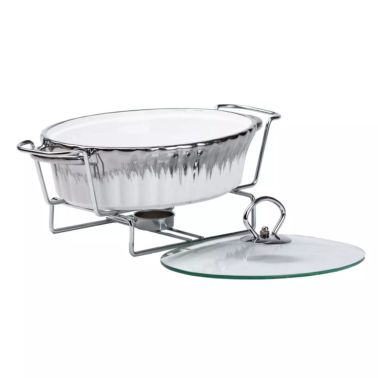 Мармітниця порцелянова овальна 1 л зі скляною кришкою, хром