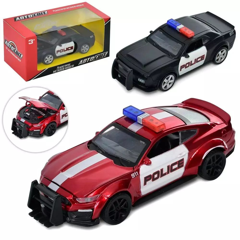 Машина AS-2910 АвтоСвіт, мет., інерц., поліція, відчин.капот, 2 кольори, кор., 15,5-7,5-7см.