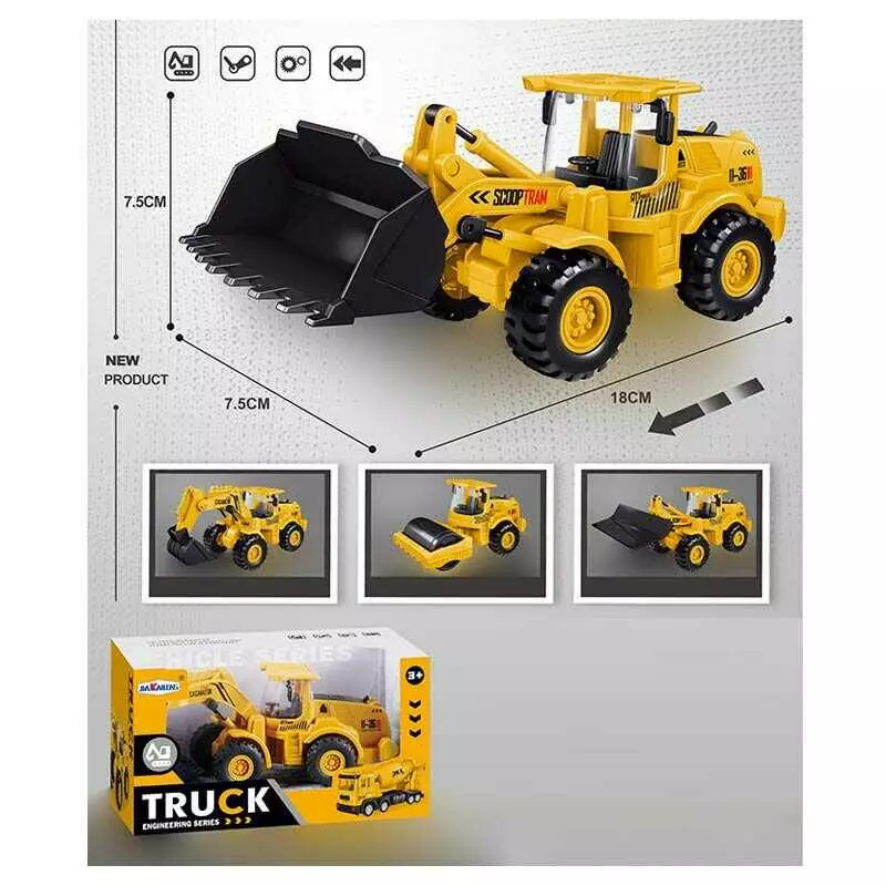 Спецтехніка JKL 139 (128/2) “Екскаватор”, розмір: 18х7.5х7.5 см, інерційний механізм, рухомий ківш, гумові шини, МІКС ВИДІВ