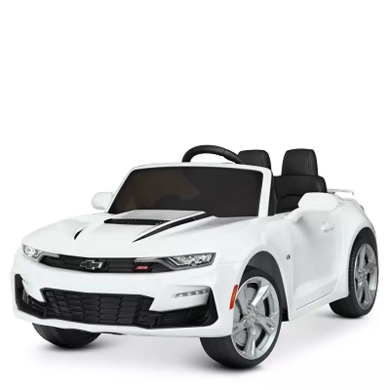 Дитячий електромобіль M 5669 EBLR-1 Chevrolet, шкіряне сидіння - має яскравий і незабутній дизайн, створений у стилі справжнього спортивного автомобіля Chevrolet CAMARO 2SS, іграшка відрізняється високою якістю, комфортом і функціональністю, завдяки чому катання на такій машині доставить вашому малюкові масу. Дитячий електромобіль M 5669 EBLR-1 має елегантні фари, які красиво світяться в темряві, на панелі біля керма встановлена магнітола, на ній дитина зможе слухати улюблену музику, що зробить їзду ще цікавішою, дана модель має якісні EVA колеса, що забезпечують більш м'яку та комфортну подорож. Дитячий електромобіль M 5669 EBLR-1має в комплекті пульт управління, завдяки якому батьки зможуть катати на авто малюків, також дитина може водити машину сама. Характеристики дитячого електромобіля M 5669 EBLR-1 Ліцензійний електромобіль має оригінальний значок Chevrolet Два мотори 2х35W / 12V / RPM13000 Акумулятор 12V/7AH Індикатор заряду батареї Шкіряне сидіння Відчиняються двері М'які колеса EVA Розмір колеса – 23 см, розмір диска – 18 см Передні та задні амортизатори Час на зарядку 10-12 годин Зарядка 12V/1000mA, штекер круглий одинарний Старт - кнопка, педаль газу Повільний старт та стоп Кількість швидкостей: в машині – 2 шт., на пульті – 3 шт. Максимальна швидкість – до 5 км/год Перемикання швидкостей – тумблер Рух вперед-назад - важіль Світлові та звукові ефекти, світяться передні та задні фари, кнопка увімк./вимк. світла Музика, звук при старті, регулятор гучності Додаткові кнопки на панелі, MP3, SD, USB-роз'єм, FM радіо, BLUETOOTH Двоточковий ремінь безпеки Максимальне навантаження – до 30 кг Матеріал корпусу: міцний пластик Пульт дистанційного керування 2,4 G BLUETOOTH (STOP BUTTON) Ручка та маленькі коліщатка ззаду для зручного переміщення Вага коробки: 21,8 кг Вага машини: 16,5 кг Розмір коробки: 123х60х36 см Розміри машини: довжина - 118 см, ширина по дзеркалам / колесам - 72см / 58см, висота - 52 см