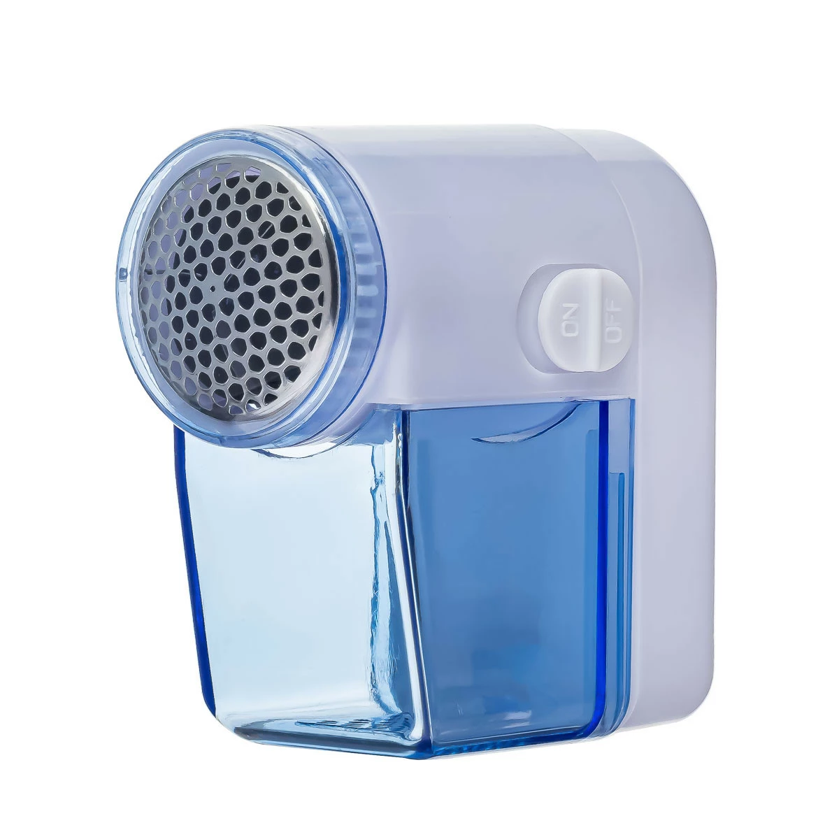 Машинка для удаления катышек с одежды. Машинка удаляет катышки при помощи сетки с мелкими отверстиями, края которых остро заточены. Позади сетки находится вращающийся нож. Стальные лезвия. Контейнер для сбора катышек. Тип питания - 2 батарейки типа "АА". Батарейками не укомплектован. Размер: 8х9х5 см