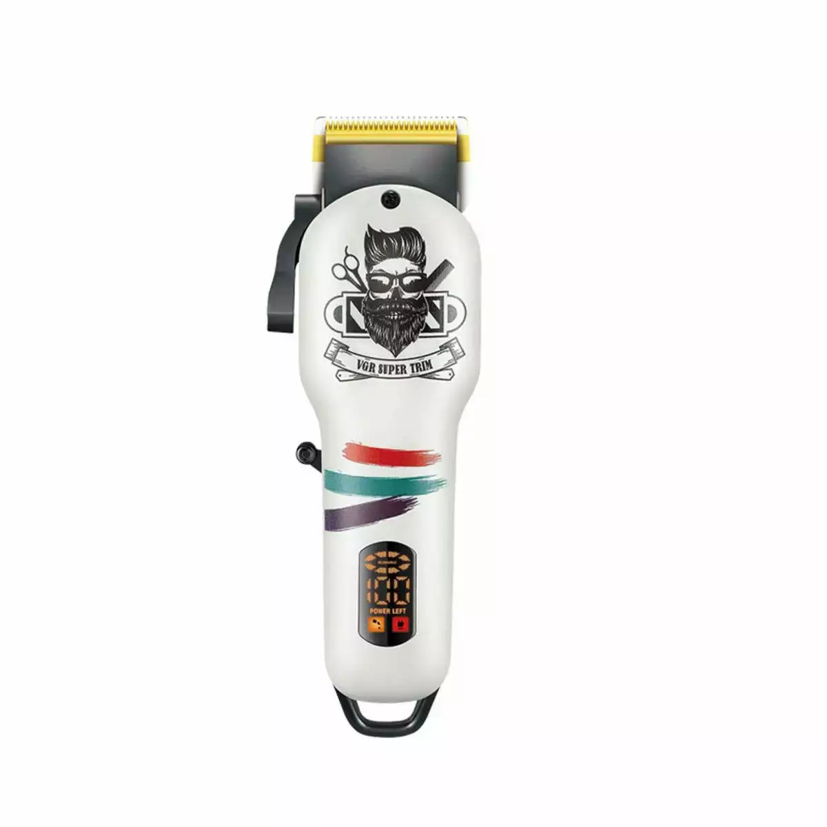 Машинка для стрижки акумуляторна V-699W професійна з LED-дисплеєм, біла