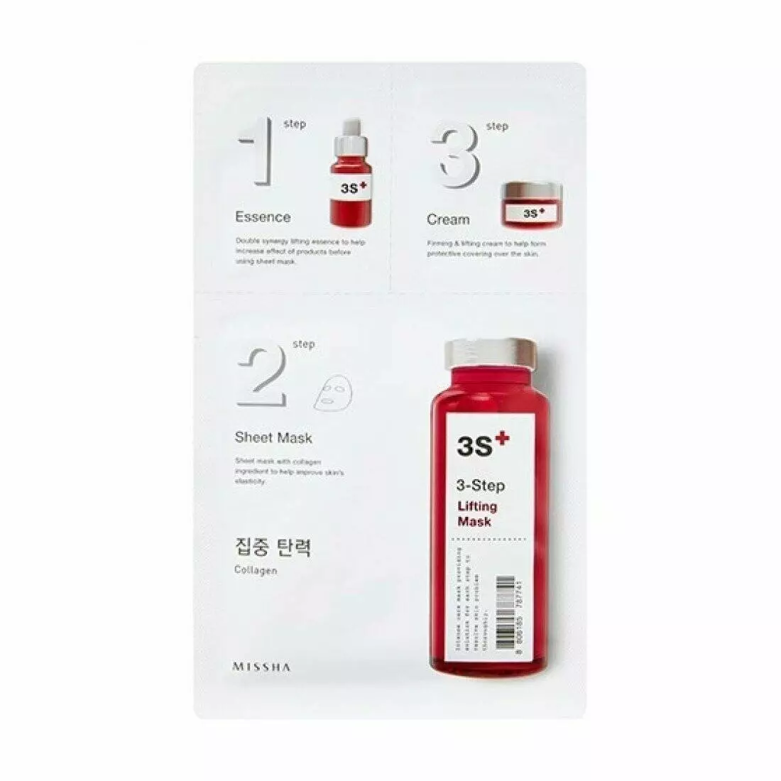 3-шаговая лифтинговая маска для лица Missha 3-step Lifting Mask от корейского бренда Missha – инновационная лифтинговая маска для лица, оказывающая сразу 3 защитных действия. Сначала вы наносите на кожный покров специальную эссенцию, далее – непосредственно тканевую маску, а в завершении процедуры – увлажняющий крем. Результат не заставит себя долго ждать, поэтому уже после первого применения вы заметите, что кожа стала более упругой, а личико приобрело свежий вид.