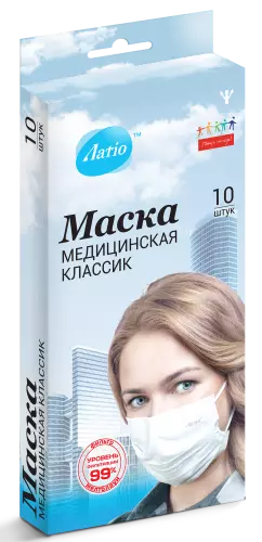 Маска медицинская трехслойная «Латio». Высокоэффективный фильтр обеспечивает высокую степень защиты. Нежный гипоаллергенный материал не затрудняет дыхание. В маске используется уникальный "фиксатор формы" (патент ООО «КИТ» на полезную модель № 110937), который препятствует соприкосновению маски со ртом даже при сильном вдохе. Особая сборка «Омега» формирует оптимальную форму воздушного кармана, и обеспечивает плотное прилегание маски к лицу. Мягкие ушные петли на широкой плоской резинке, надежно фиксируют маску, и не натирают даже при длительном ношении. Время использования до 6 часов.