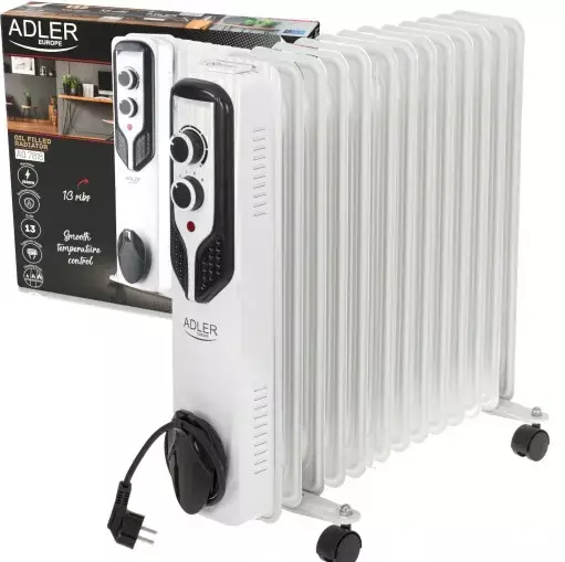 Ефективний масляний радіатор Adler 7818. Дозволяє обігріти приміщення, де радіатори відсутні або недостатньо ефективні. Незамінний при виході з експлуатації опалювальної системи. Нагрівач дозволяє плавно регулювати температуру, працює на 3-х рівнях потужності. Нагрівач автоматично регулює споживану потужність відповідно до встановленої температури нагрівання. Для безпечного використання пристрій має захист від перегріву. Радіатор виконаний в елегантній лінії, тому його можна розмістити на місці прийому гостей вдома або клієнтів в офісі. Він має 13 нагрівальних ребер та потужність 2500 Вт.