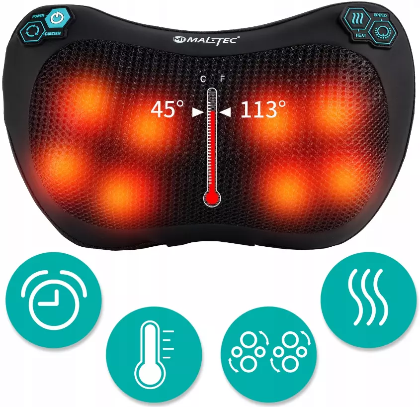 Кроме того, бывает сложно самостоятельно добраться до труднодоступных мест и сделать массаж спины или шеи. Именно здесь на помощь приходит массажер-подушка MalTec, который делает это легко и точно.