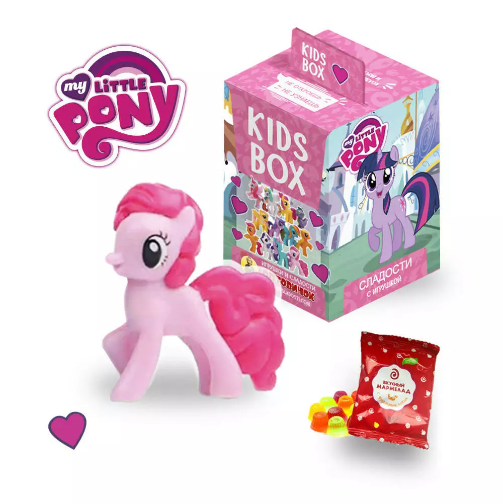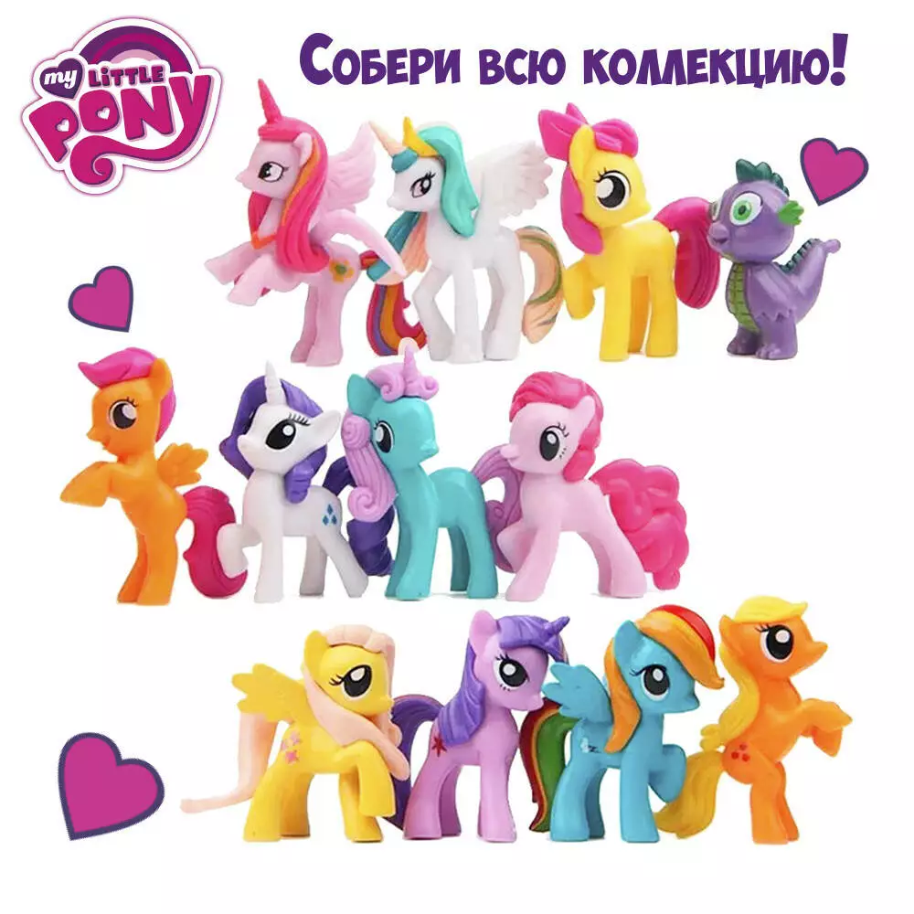Мир мультсериала - фэнтезийный , в нем проживают разные существа реального мира: лесные звери, птицы, домашние животные и т.д. - рядом со сказочными: гидрами , драконами , грифонами , фениксами. События мультсериала происходят в волшебном крае Еквестрия. Предпочтительными жителями Еквестрии есть пони разного возраста и видов: земные пони - трудолюбивые жители городков, преимущественно возятся на земле; единороги - пони, имеющих магический угол и сильнее, чем в других, способность к магии; пегасы - пони, имеющих крылья и умеют летать; основная деятельность - следить за погодой; аликорны - пони, имеющих и крылья, и рог, и обладают мощной магией. По состоянию на конец шестого сезона известно пять аликорнив. Собери всех героев знаменитого мультфильма с новинкой от Кидсбокс