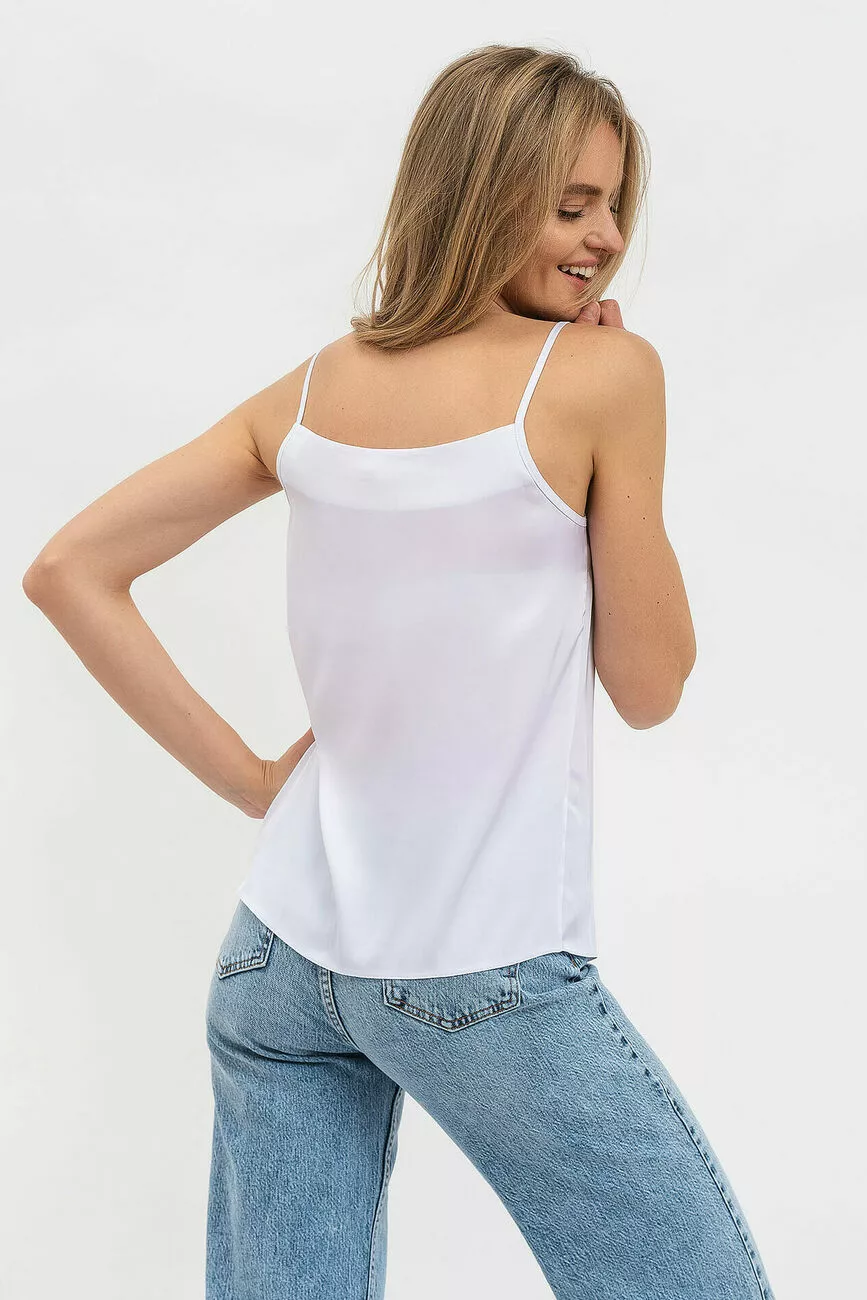 Наш магазин жіночого одягу пропонує широкий вибір моделей! Створюючи літній гардероб, обирайте легкі тканини, які підкреслять витонченість та романтичний настрій. Напів прилегаюча майка на тонких бретелях, що зроблена з ніжного шовку, – доступна розкіш, яка підкорила багато жіночих сердець! Замовляйте цю модель та інший жіночий одяг на нашому сайті!