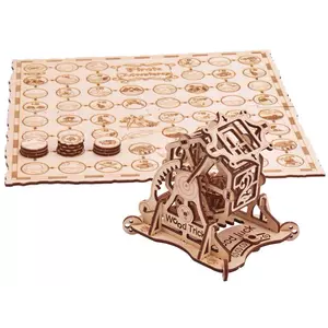Країна :Україна Бренд: Wood Trick Матеріал :Фанера ФК шліфована Рух: Механічний З'єднання: Без клею Збірка: Самостійна Кількість деталей: 53 Розмір моделі: 135*134*115 мм Розмір упаковки: 370*185*35 мм Складність збірки: Легко Середній час для збирання: 1 година Вага моделі в упаковці: 0,828 кг Ми раді запропонувати вам найцікавіші, незвичайні і оригінальні дерев'яні моделі. Колесо фортуни - якраз така річ. Збирати її дуже просто: в комплект входить лише п'ятдесят і три частини. Він забезпечений докладною інструкцією з картинками. Справитися зі справою зможе і маленька дитина. Тільки уявіть, як він стане пишатися, зібравши свій перший 3d конструктор. Колесо фортуни дійсно справляє враження. Воно виглядає складно і незвично. Але за уявною складністю таїться простота збірки. А який простір для фантазій дарує цей дерев'яний конструктор! Колесо фортуни може принести удачу, щастя, зміни на краще - або небезпечні, захоплюючі пригоди. Придумуйте разом з дітьми нові фантастичні історії. Відправляйтеся разом з ними в світ казок! Також ми вирішили внести родзинку в дану модель - зацікавити Вас грою. Суть гри полягає в тому щоб дійти до фіналу. Ви крутите важіль, випадає Ваш хід, хто швидше, пройде всі кроки, той переможець. Як бачите це не просто конструктор, це ще кумедна гра в стилі монополії. І що може бути краще, ніж красиві дерев'яні іграшки! Колесо фортуни абсолютно нешкідливо для дитячого здоров'я. Це природний, екологічний матеріал. Ви можете подарувати цю річ самим маленьким діткам. Купуйте, збирайте і грайте всі разом в нову гру від WoodTrick! Увага! Модель Колесо Фортуни йде в комплекті з грою! Правила гри 1: З'єднайте дві ігрові карти 2: Гравці вибирають фішки 3: Обертаючи Колесо фортуни, гравці переміщають свої фішки відповідно до отриманого числом 4: Ви можете видавити кола і змінити гру за вашим бажанням 5. Виграє той гравець, хто швидше дійде до скарбів