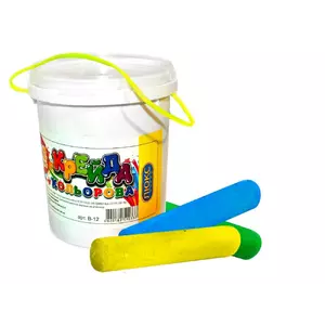 Артикул: В-12 Розмір крейди:20 мм* 100 мм Фасування: ящик-8 шт Крейда кругла 12 кольорів «Відро» пластикова упаковка. Призначений для малювання на будь-яких поверхнях, таких як папір, картон, стіна, асфальт і так далі. Малювання крейдою допомагає розкрити творчі можливості дитини. Крейди виготовлені з екологічно чистих, натуральних матеріалів, що не містять шкідливих речовин.