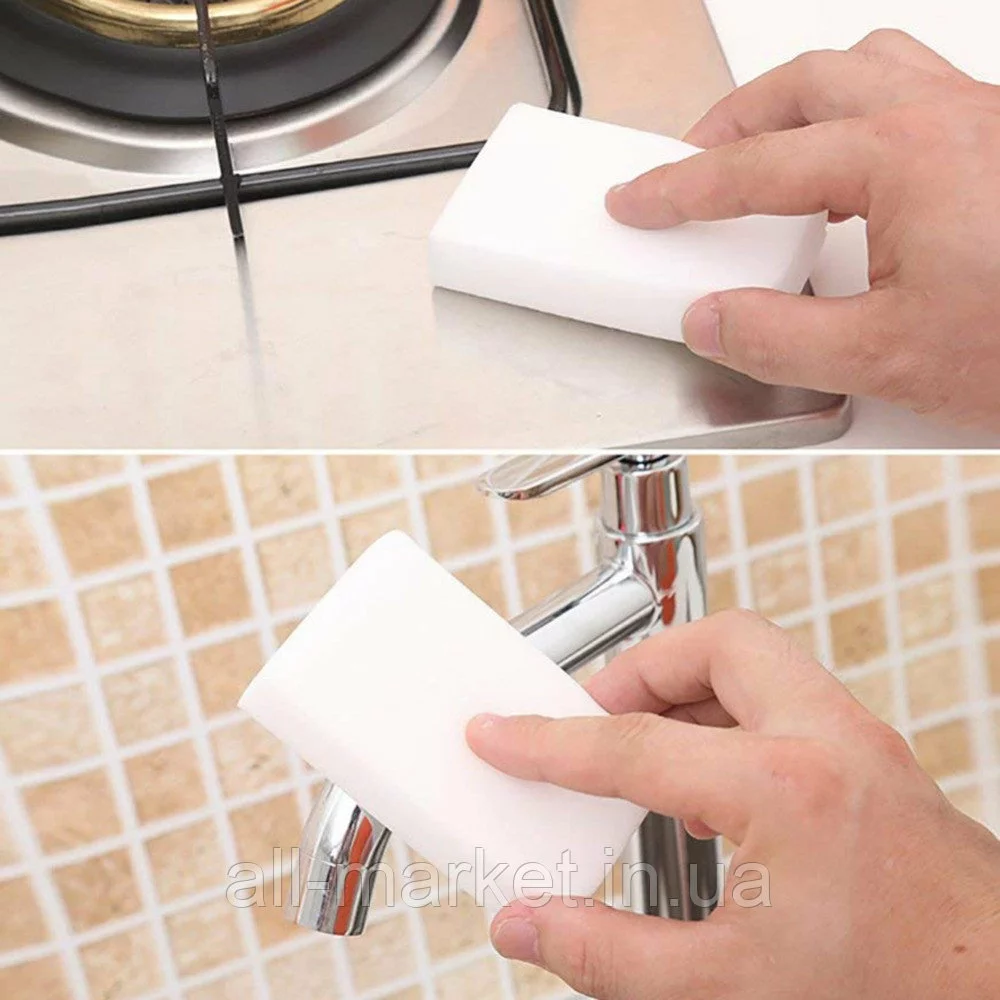 Губки из меламина используют для чистки посуды, мебели, стен, пола, дверей, окон, зеркал, бытовой техники и пр. Они удаляют практически все типы загрязнений.