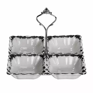 Менажниця порцелянова на 4 секції 18*18*3 см квадратна, срібло
