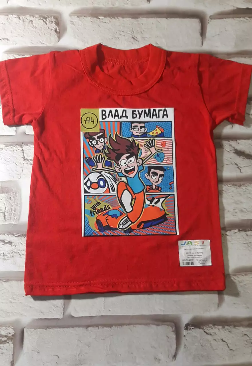 Футболка розміром від 98 до 152 см.