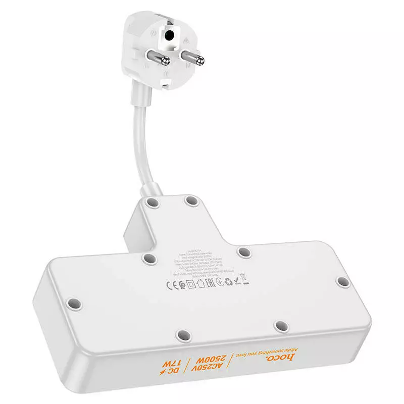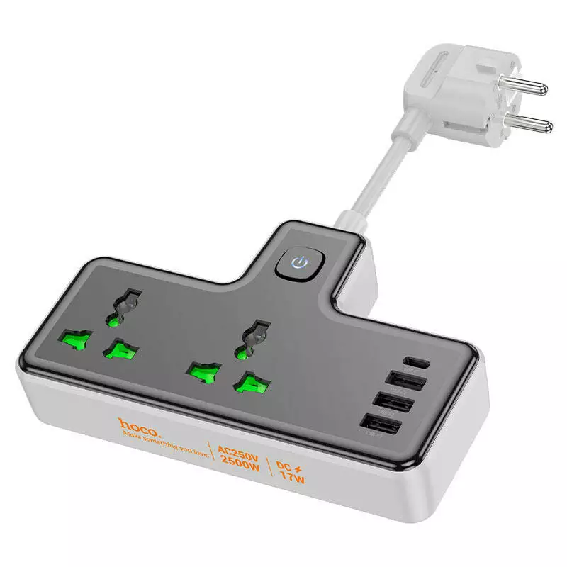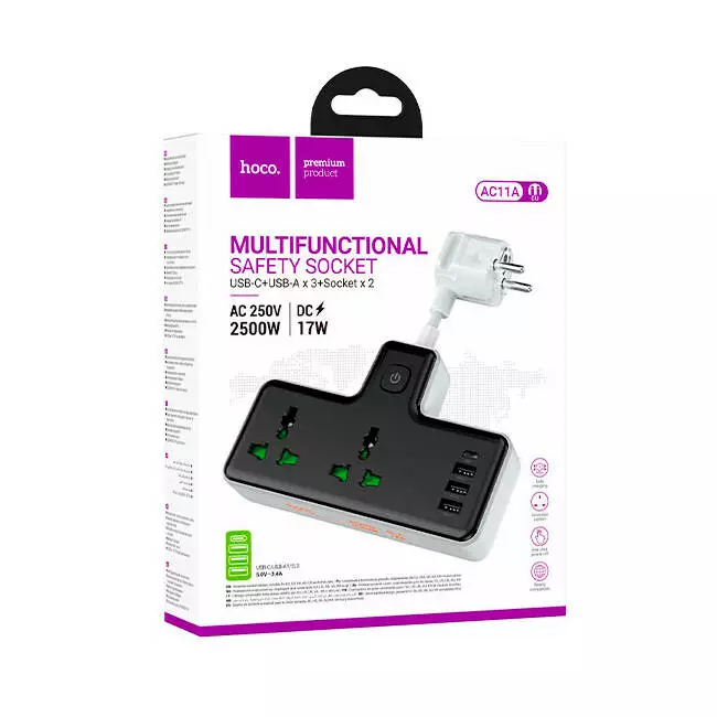 Мережевий фільтр HOCO AC11A на 2 розетки + 3 USB + USB-C, 17W,