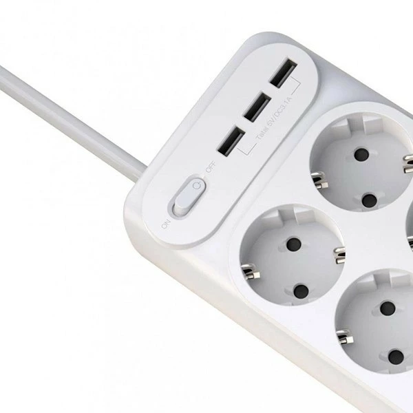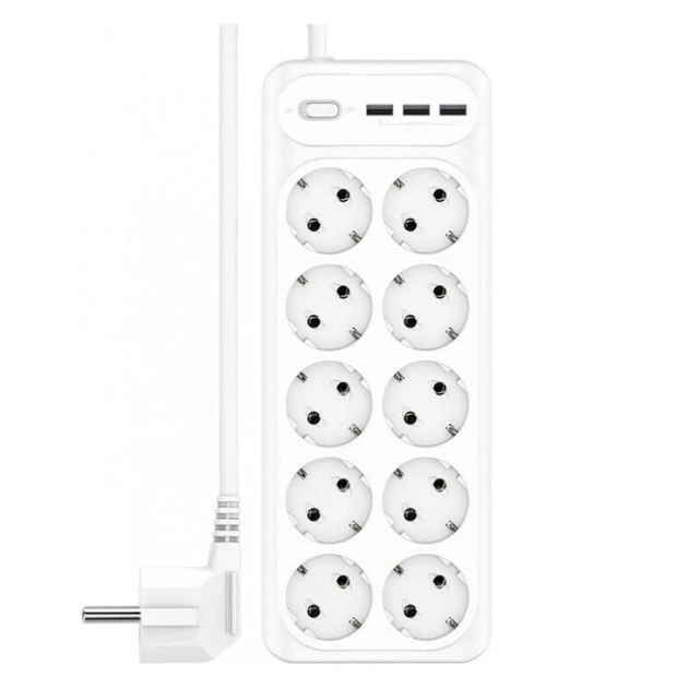 десяти євророзеток оснащений додатково трьома роз'ємами USB-A для